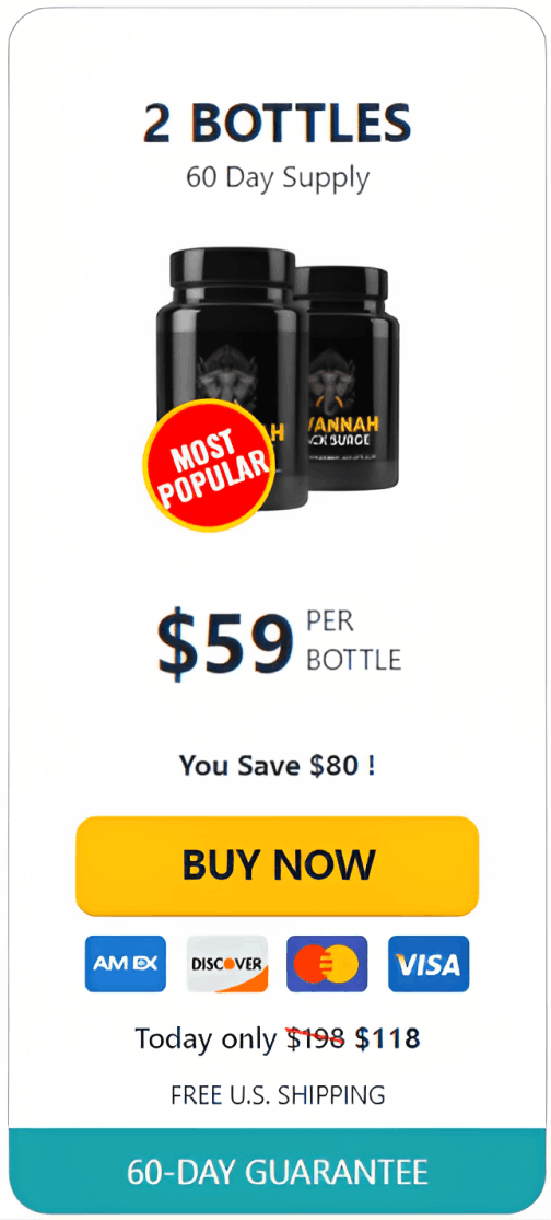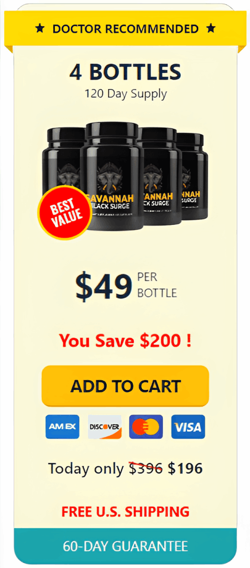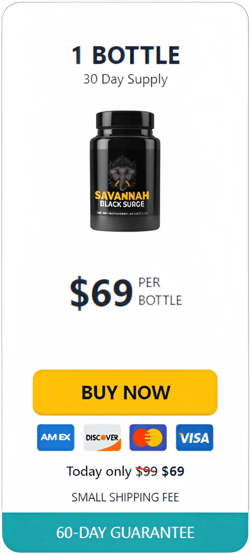 Savannah Black Surge Only $49 Per BottleSpecial Offer Only For Today Order 4 Bottles And Save $200 Today Only + 60 Day Money-Back Guarantee + Free Shipping Attention! Get Special 50% Discount Today
